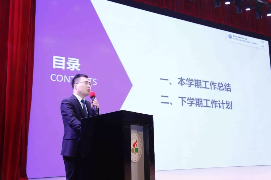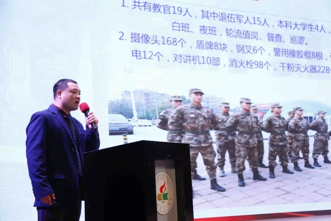 张志国主任分别从精神文化、物质文化、制度文化、活动文化建设等层面对后勤保障、安全保卫以及学校基础设施建设等做了具体汇报。张志国主任强调,过去的一学期,后勤工作在自教育思想的指导下,以人的终身发展和生命完整为终极目标,强化管理和服务的功能,为全校师生保驾护航做出了积极努力。斥资1500万,完成了变压器增容、校内中央空调改造、超级央清班教室改造等重大工程。张志国主任表示,在新的学期将进一步落实各项制度,完善检查体制,坚决做好教育教学的保障与服务并发挥后勤育人的功能。