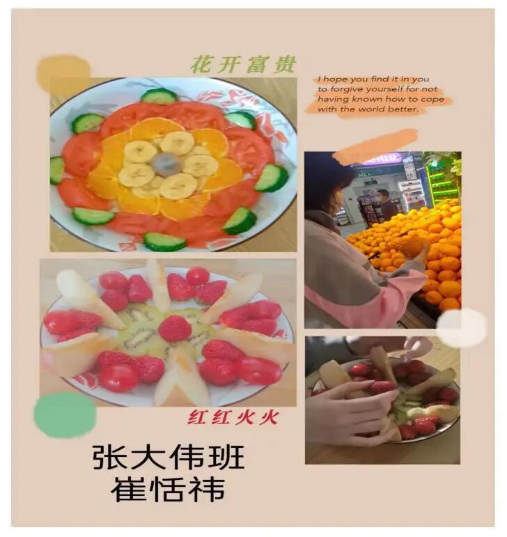中华民族是勤于劳动善于创造的民族,正是因为劳动,我们拥有了辉煌的历史,正是因为劳动,我们有了今天的成就。将劳动教育落到实处,才能将面向未来的素质教育真正落地。疫情下的网络教育教学是对师生特殊的考验,水果拼盘活动旨在发挥劳育育人的作用,丰富学生居家课余生活,让学生将美根植于心间!