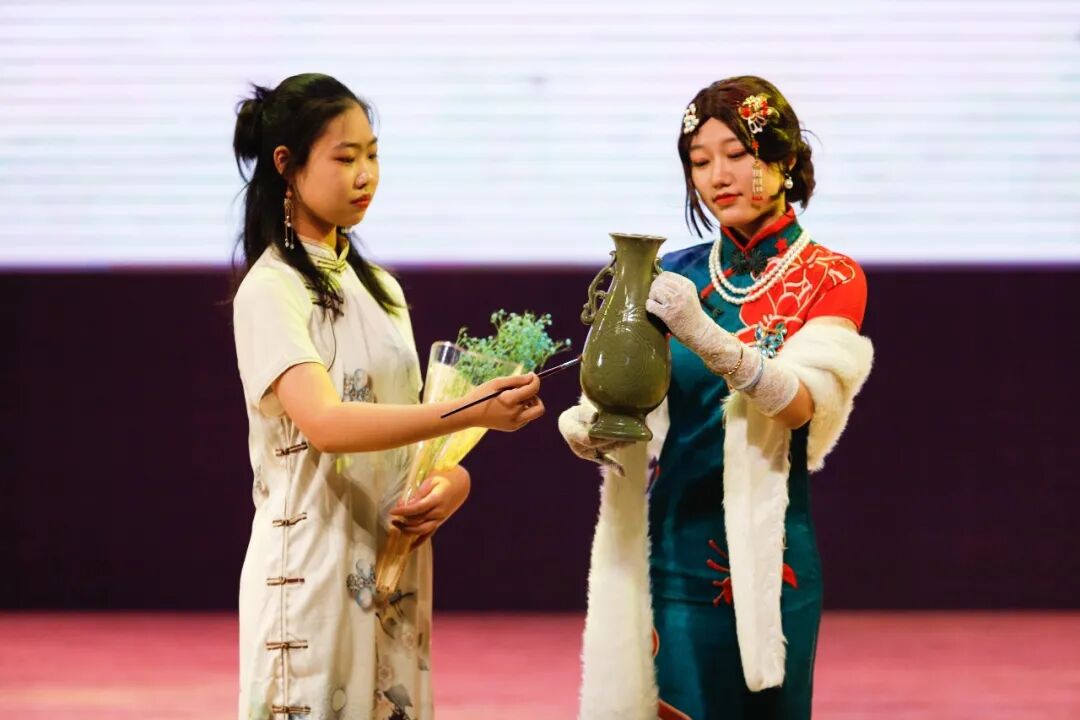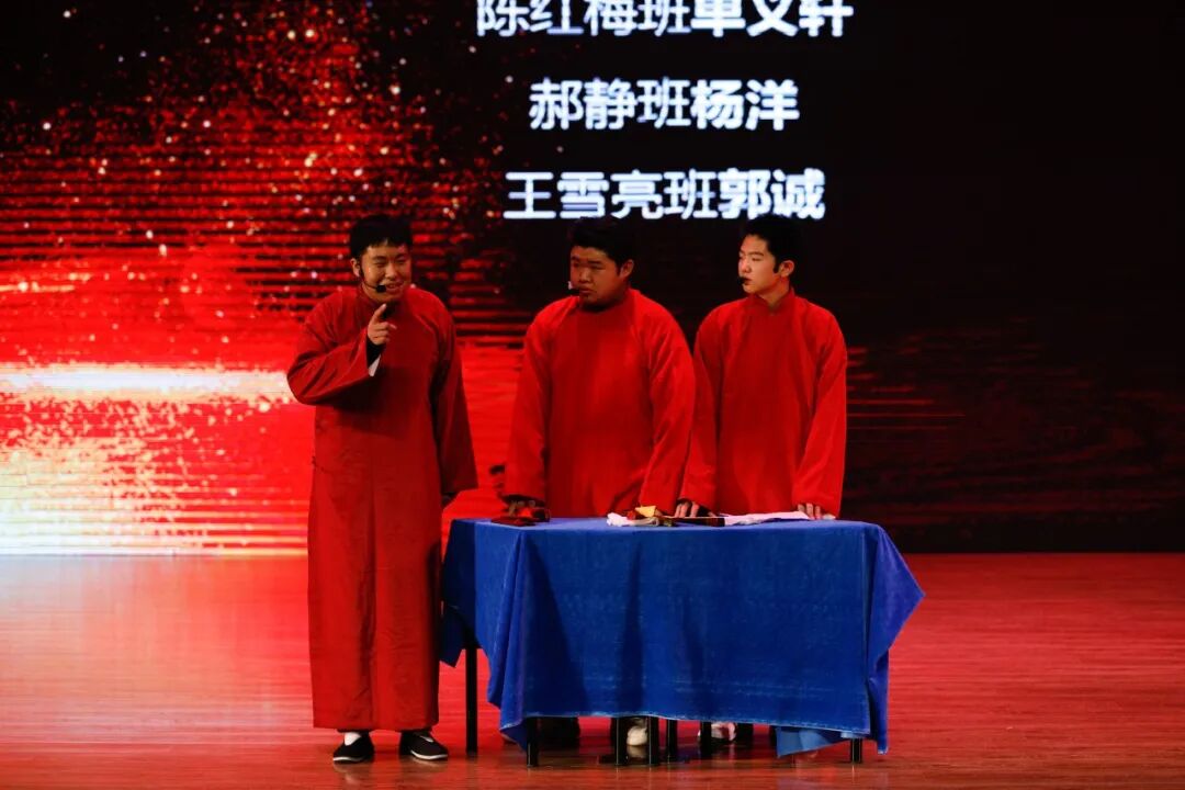 相声社团带来的原创相声《六力齐发》。为丰富精神生活,释放学习压力,学生们根据自己的兴趣爱好自主建立社团。服装社、舞蹈社、篮球社、话剧社、魔方社、摄影社、朗诵社、演讲社、形体社,处处彰显着美中学子灵动的生命和成长的自觉。